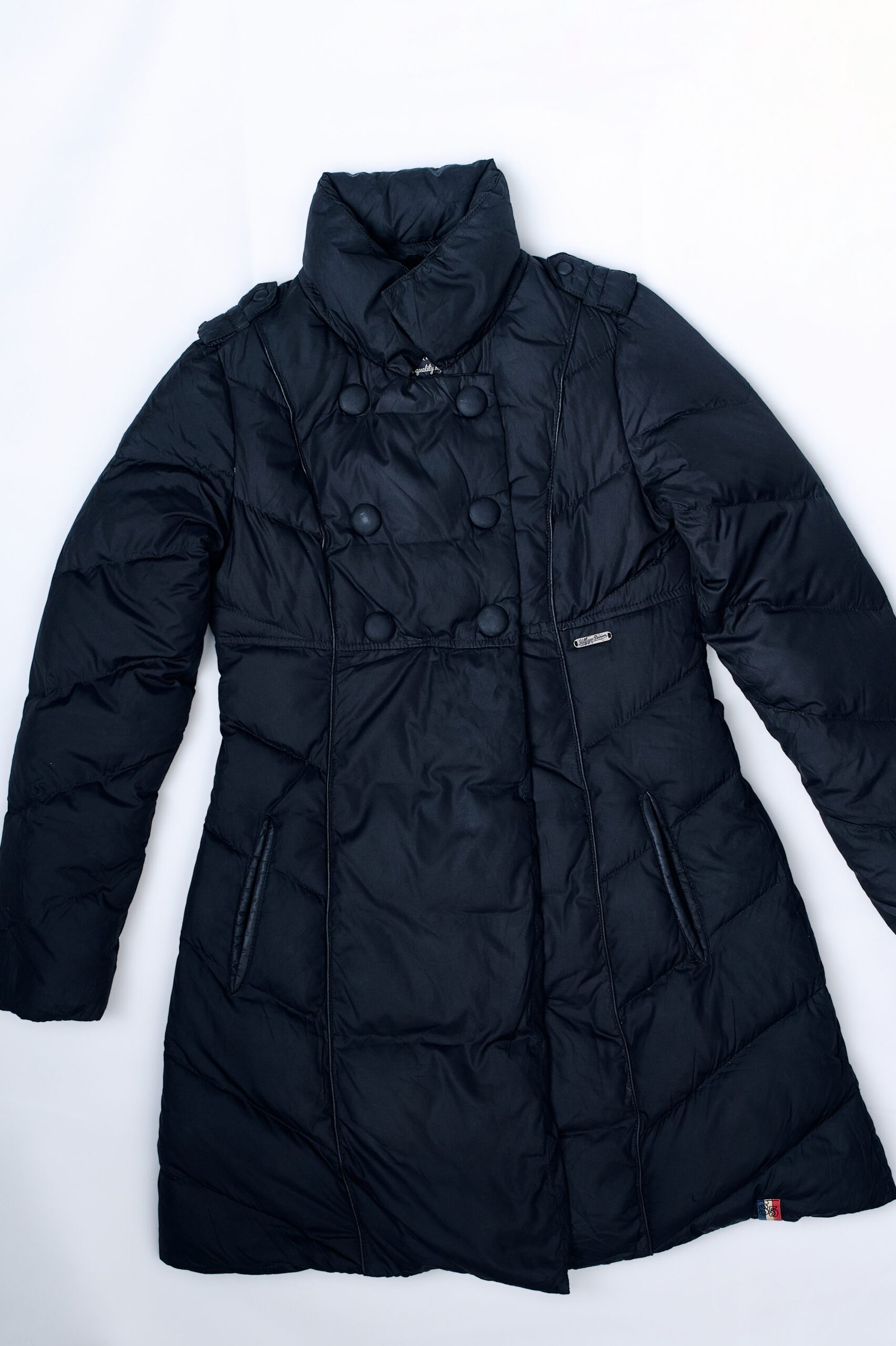 • شعار صغير إضافي ثلاثي الألوان يتواجد على حافة الجاكيت السفلية، يضيف لمسة جمالية خفية.