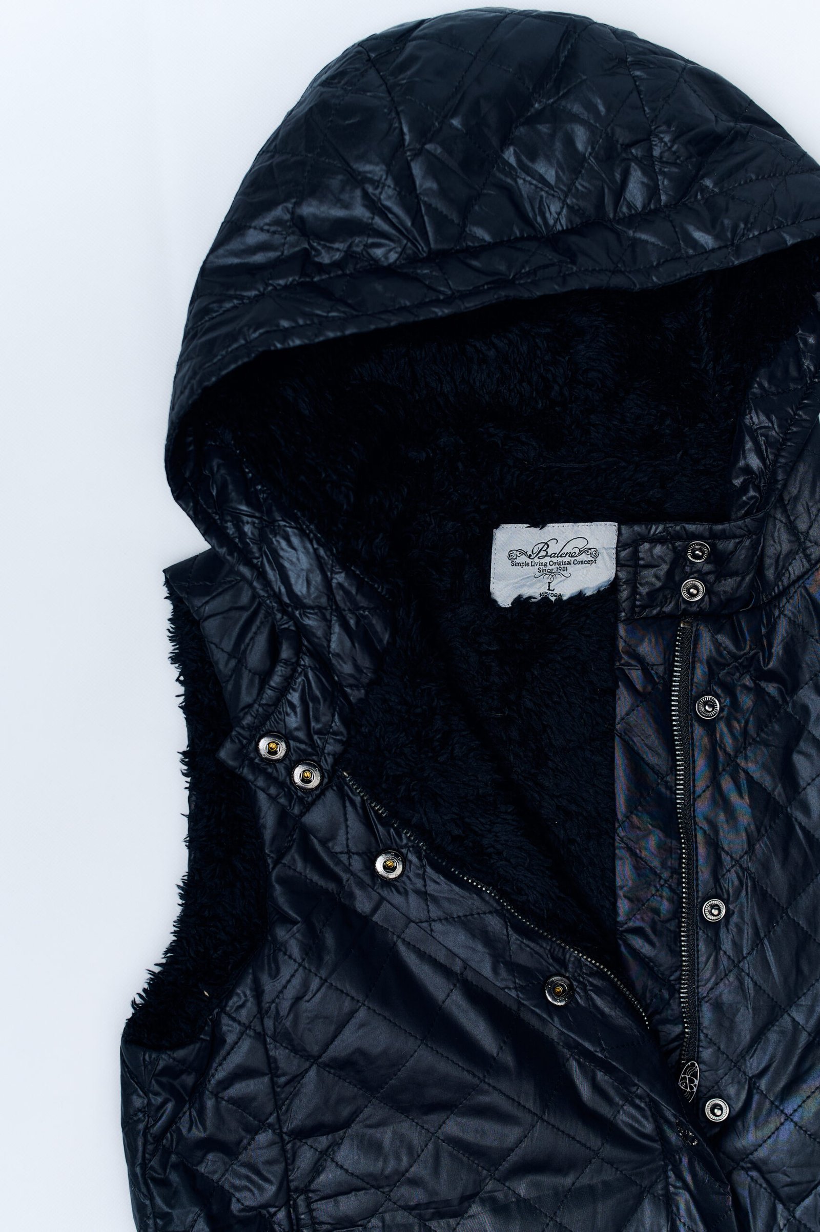فيست (Vest) مبطن أسود – مبطن من الداخل بالفرو الأسود ويحمل علامة Badoo.